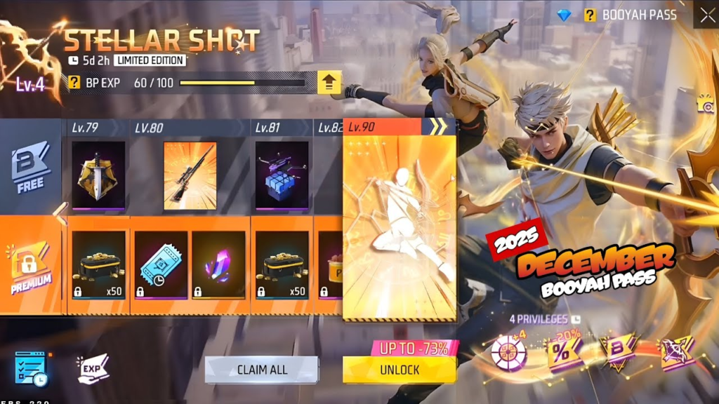 Booyah Pass Free Fire Season 36: Stellar Shot hadir sebagai salah satu season Castletoto dengan konsep visual paling memukau di tahun ini. Dengan tema futuristik bernuansa galaksi, Garena sukses menghadirkan berbagai item eksklusif mulai dari bundle karakter, skin senjata, hingga emote dan aksesori bertema kosmik yang membuat tampilan pemain semakin keren di medan tempur. Desain glowing, efek cahaya neon, serta nuansa teknologi tinggi menjadikan season ini sangat cocok bagi Survivor yang ingin tampil beda dan lebih menonjol di permainan.